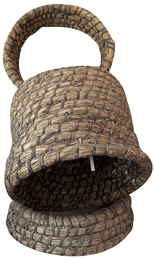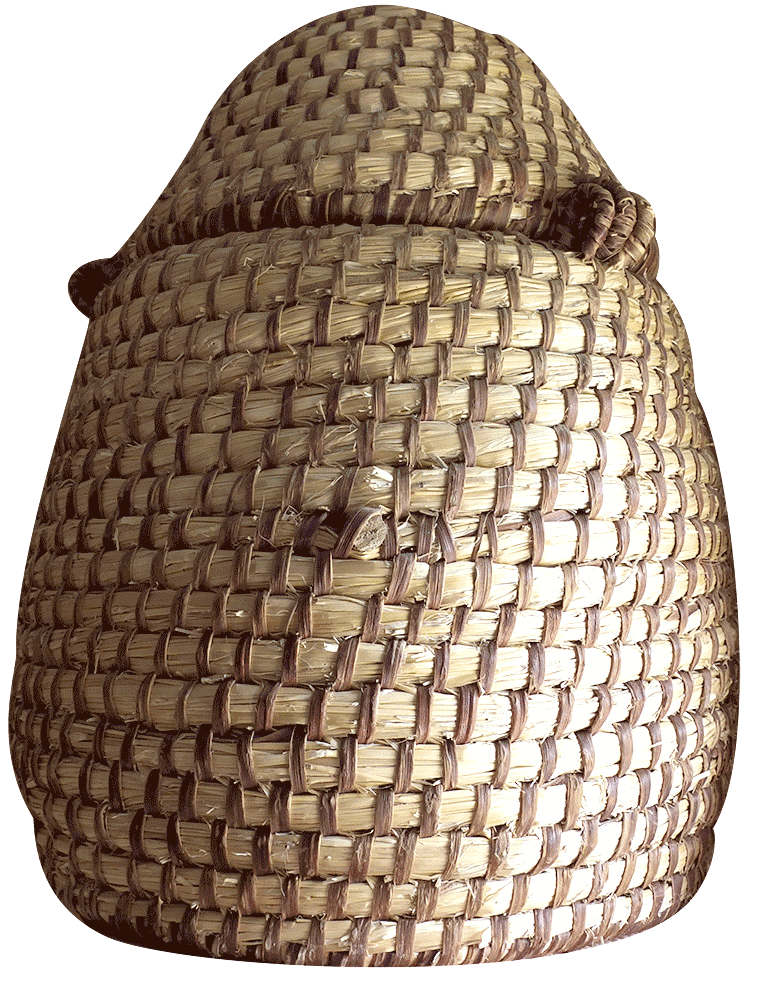 Cette ruche est réalisée en paille cousu avec de la ronce. Cette pretique était très utilisé jusqu’au début des années 80. Depuis, l’augmentation de besoins de production l’ont remplacé par des ruches « Datan » pour une manipulation plus pratique et plus adapté aux besoinx actuel